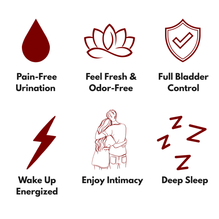 😴 Sleep deeply without waking up to pee every hour You wake up rested instead of tired, irritated, or running to the toilet 5 times a night because of a false urge to urinate.